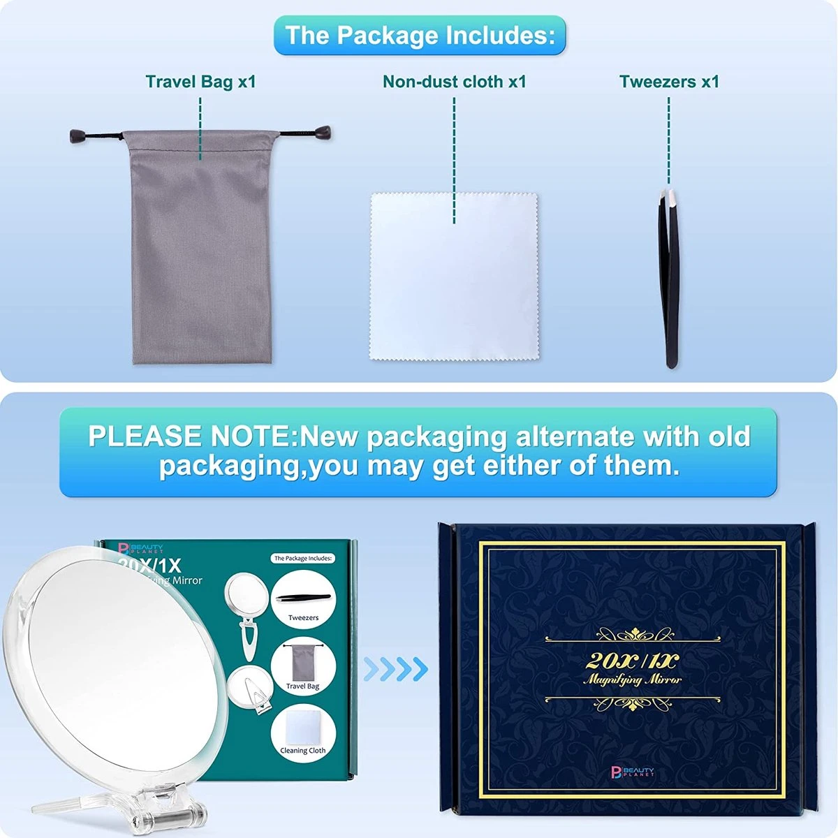 - Spiegel met 20x vergroting, gemaakt van optisch kwaliteitsglas; 5 inch rond. De meeste 20x vergrootspiegel is 4 inch groot, dit is de nieuwe maat, 5 inch groot.
