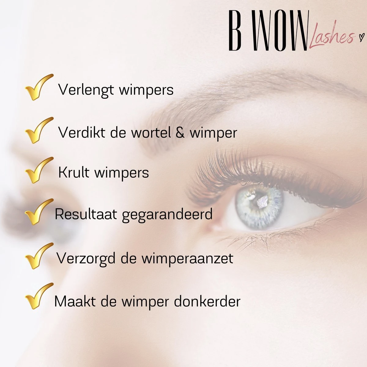 Met de hoogste groeipercentage van maar liefst 95% staat onze nieuwe formule wimperserum genaamd BWOW op nummer 1. Het grootste voordeel van dit vernieuwd premium product is het groeiend, en voller makend effect die het heeft op je wimpers.