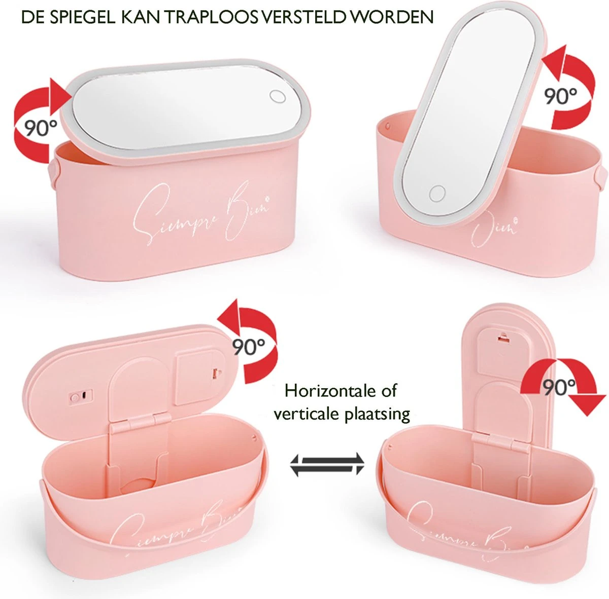 Beautycase Rose – LED-spiegel – Make Up – Make-up Org – Make-up Organizer Met Spiegel – Make-up Koffer – Beautycase – Multifunctioneel – Reisformaat
