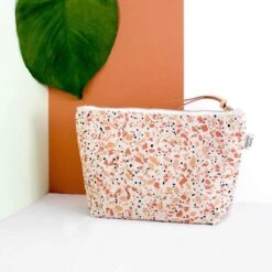 Merkloos Make-Up Tasje / Etui / Toilettas Met Trendy Kleurrijk Terrazzo Patroon – Terracotta