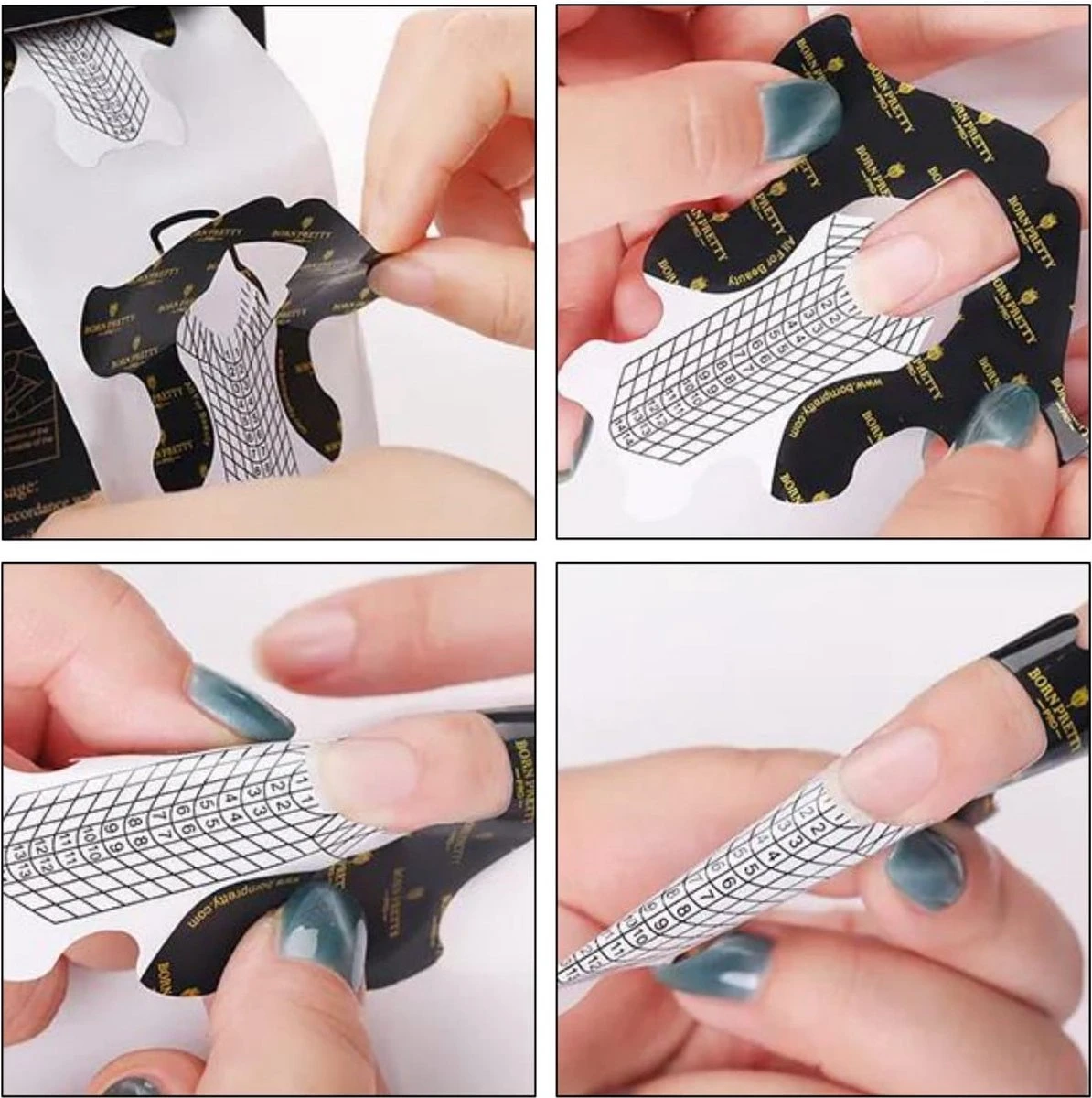 Nagelsjablonen zijn een hulpmiddel voor het verlengen van de natuurlijk nagel. Deze zelfklevende sjablonen vormen de basis voor het aanbrengen van gel, acryl en/of poly-/acrylgel. Met deze stevige vorm en de extra “vleugels” blijven de nagelsjablonen stevig en lang op hun plek.