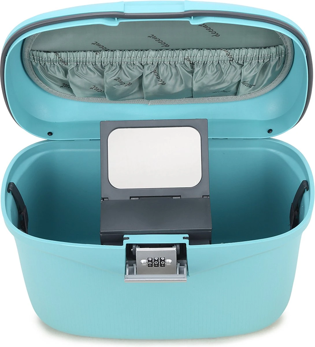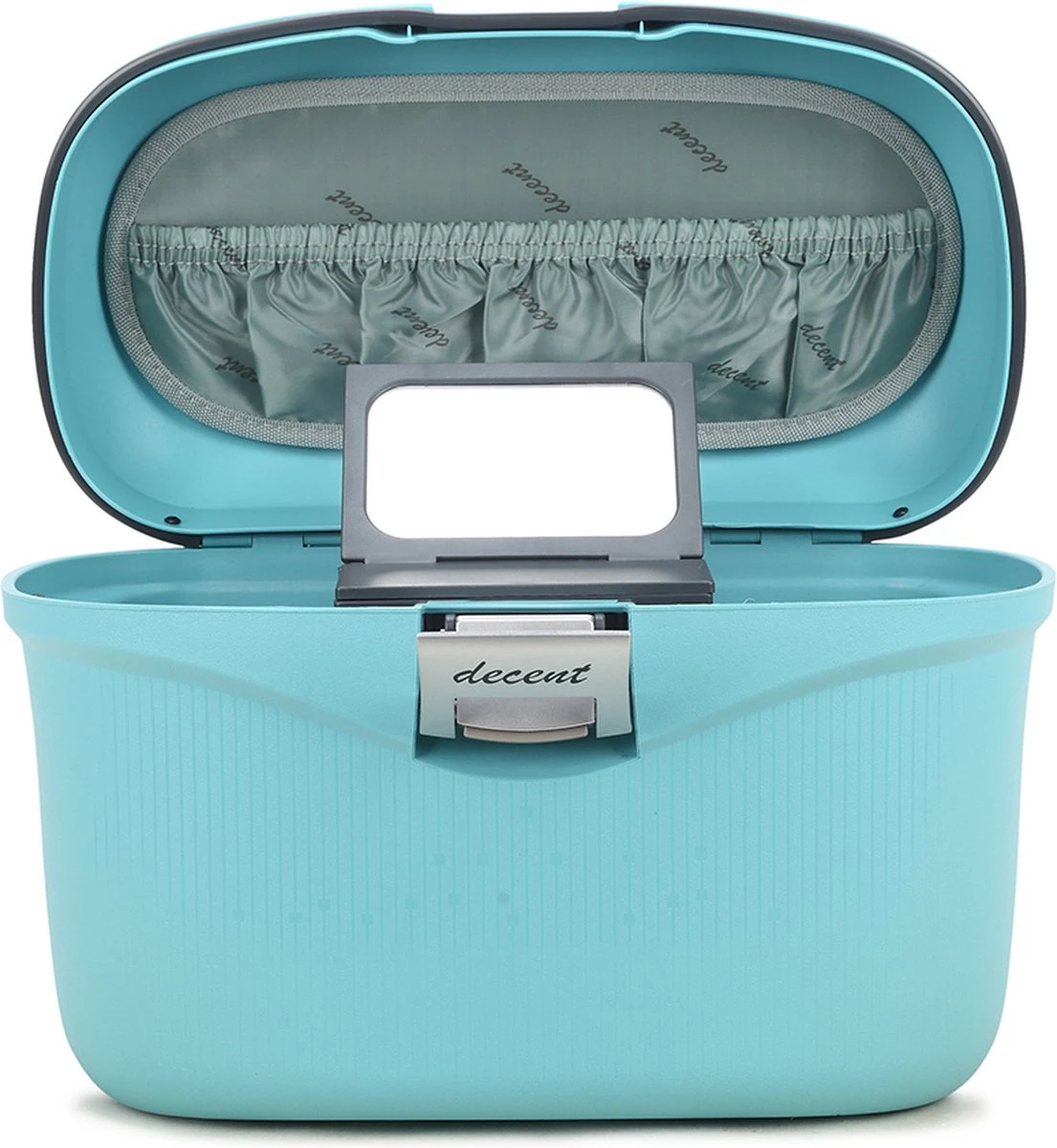Beautycase uit de Sportivo series van Decent. Dankzij het compacte formaat en de lichte uitvoering ervan kunt u deze beautycase meenemen in het vliegtuig. Bovendien is deze prijsvriendelijke collectie vervaardigd uit duurzaam en licht polypropyleen. Zo bevat de Beauty Case een spiegel en handige vakjes binnenin de beautycase. Deze Decent Sportivo beautycase is het best te omschrijven als een sterk product in een Italiaans jasje.