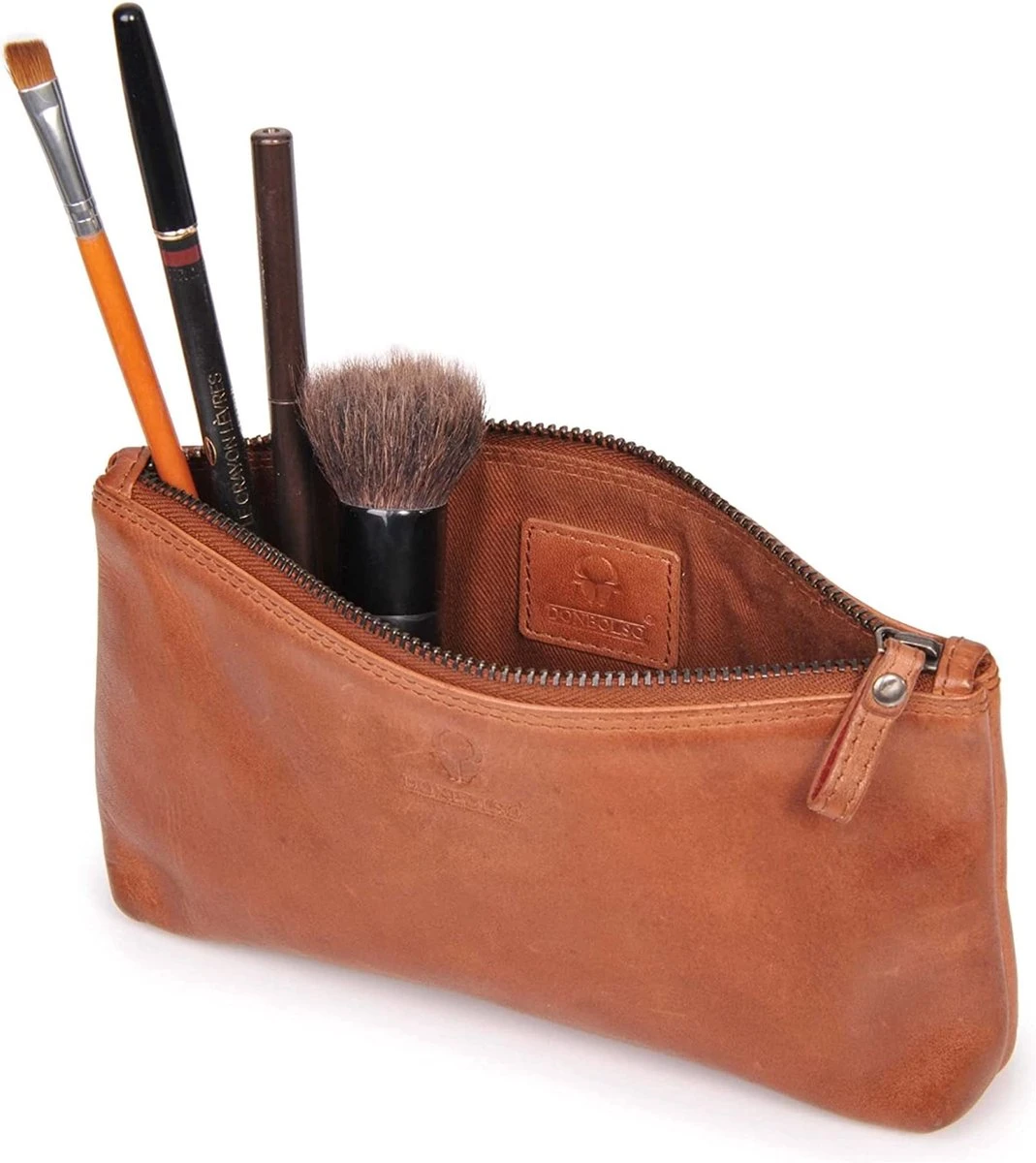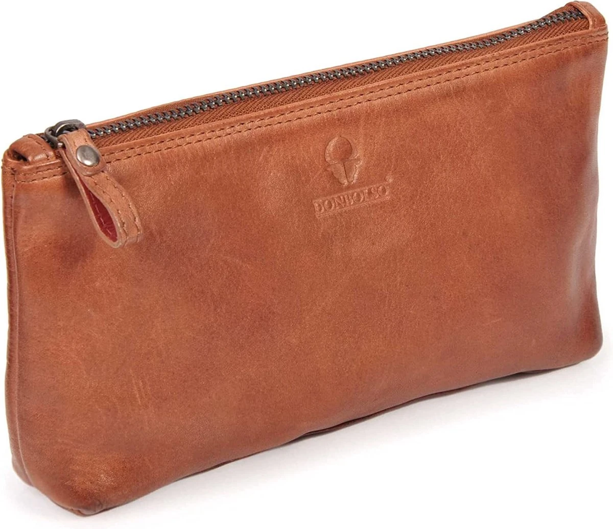 DONBOLSO® Stijlvolle Make-up Tas Cannes I Hoogwaardige Echt Lederen Etui In Cognac I Make-up Tas Voor Dames I Chique, Kleine Etui Voor De Handtas