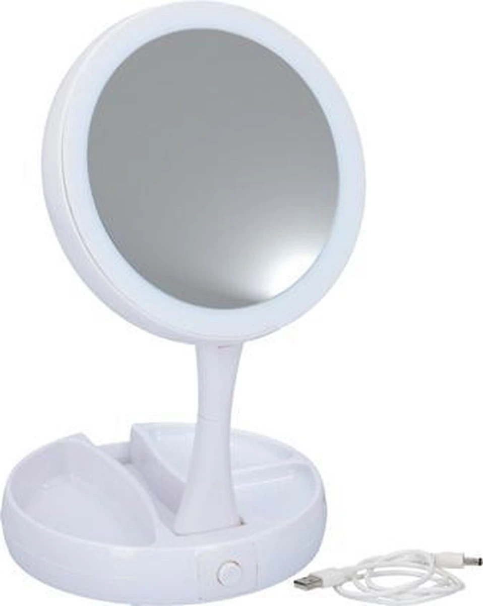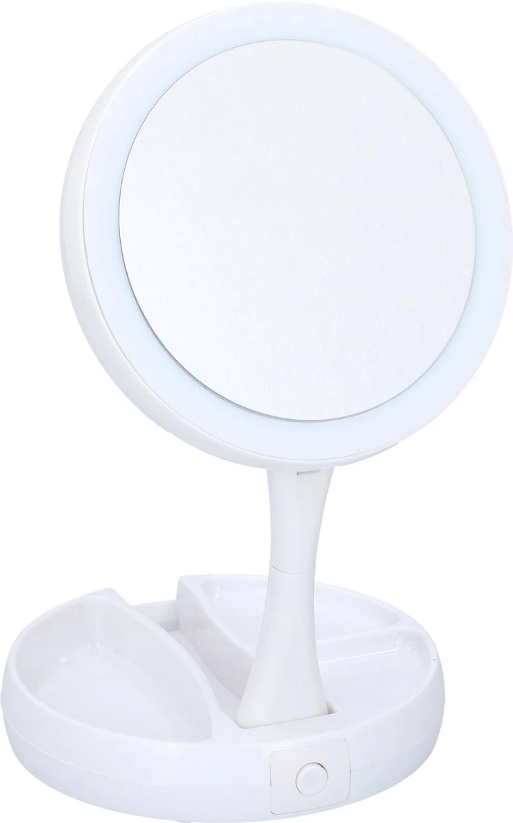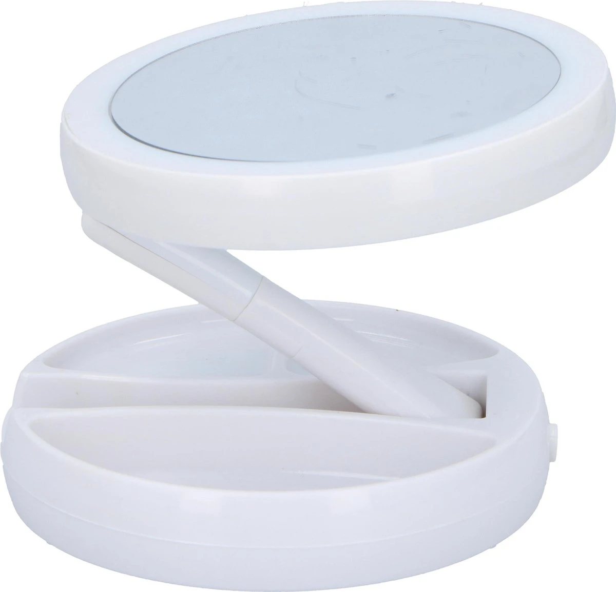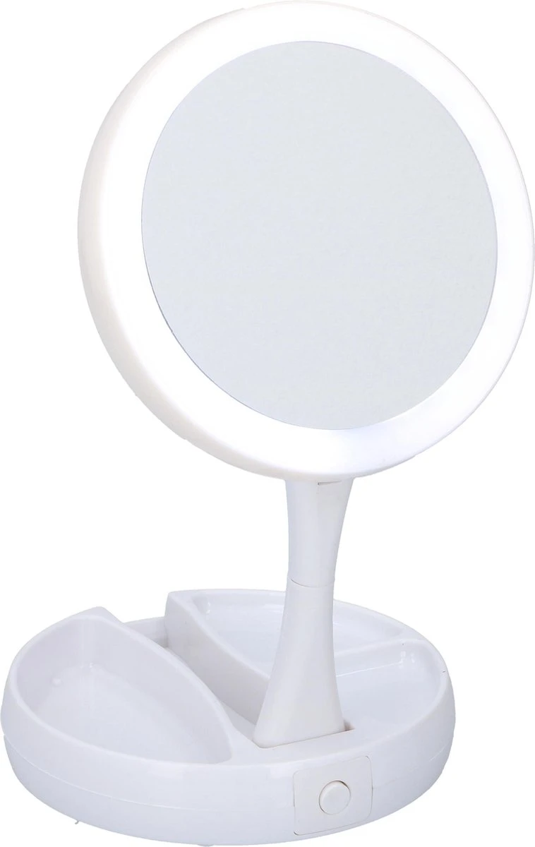 Met deze make-up spiegel kan je de spullen die je elke dag gebruikt makkelijk onder de spiegel in bakjes doen zodat je er gemakkelijk bij kan. Doordat de spiegel neergeklapt kan worden is het ook nog eens ideaal om hem op te slaan en zijn de make-up spullen opgeborgen zonder dat je ze ziet.