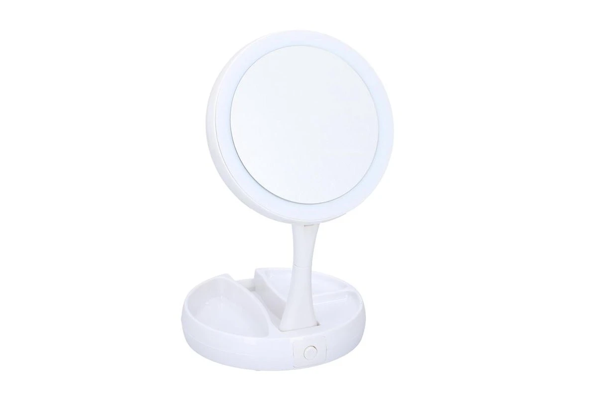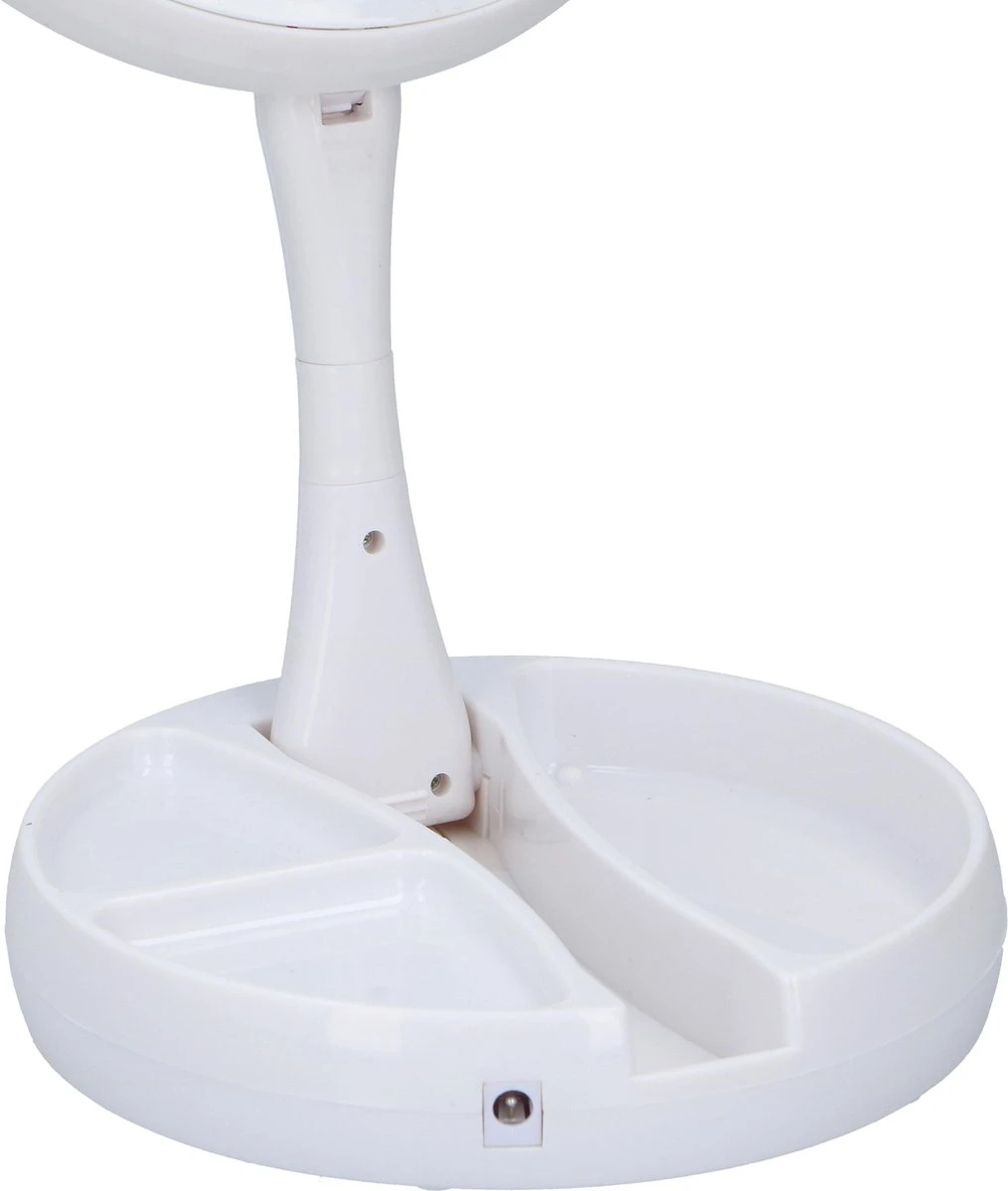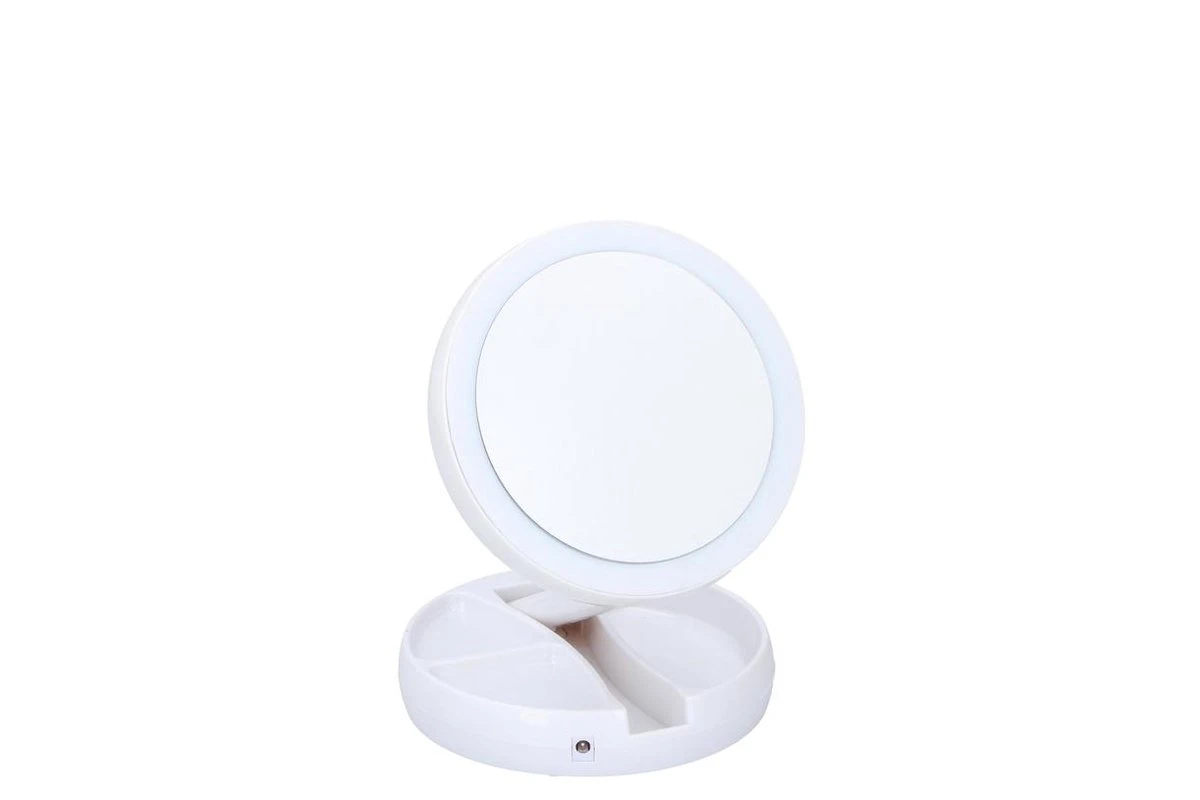 Met deze make-up spiegel kan je de spullen die je elke dag gebruikt makkelijk onder de spiegel in bakjes doen zodat je er gemakkelijk bij kan. Doordat de spiegel neergeklapt kan worden is het ook nog eens ideaal om hem op te slaan en zijn de make-up spullen opgeborgen zonder dat je ze ziet.