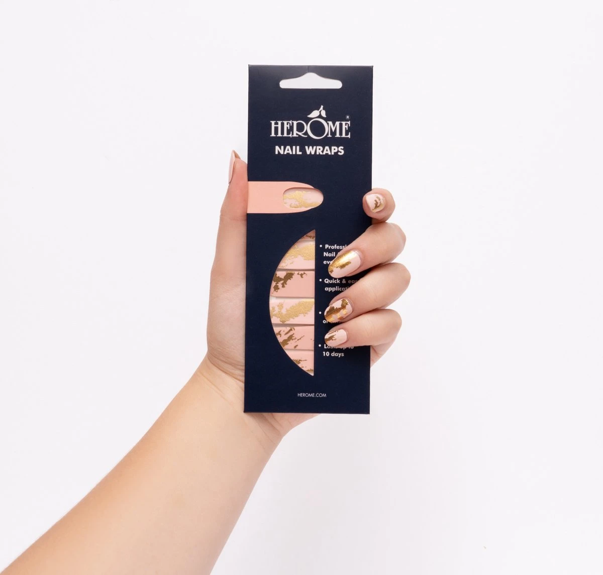 In 15 minuten een perfecte manicure! De Nail Wraps zijn gemakkelijk en snel aan te brengen, zonder droogtijd. De Herome Nail Wraps maken Nail Art voor iedereen mogelijk en beschermen de nagels tegen inscheuren.