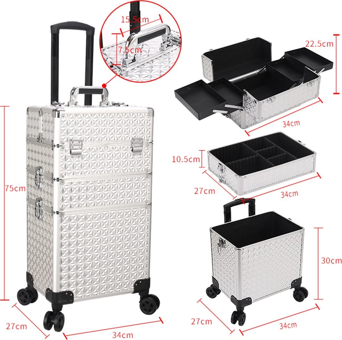 Onze trolleys zijn stevig en gemaakt van aluminium. De hoeken zijn verstevigd. Koffer is van binnen bekleed met een hoge kwaliteit zwart fluweel. De koffers zijn zeer ruim en gemakkelijk voor het vervoeren van producten zoals UV / LED-lampen en alle benodigde accessoires en cosmetica voor manicure en pedicure. De trolley is zeer functioneel. Koffer heeft een handig handvat en is zeer licht. Deze trolley is ook zeer geschikt om in verschillende delen in te delen en mee te nemen.
