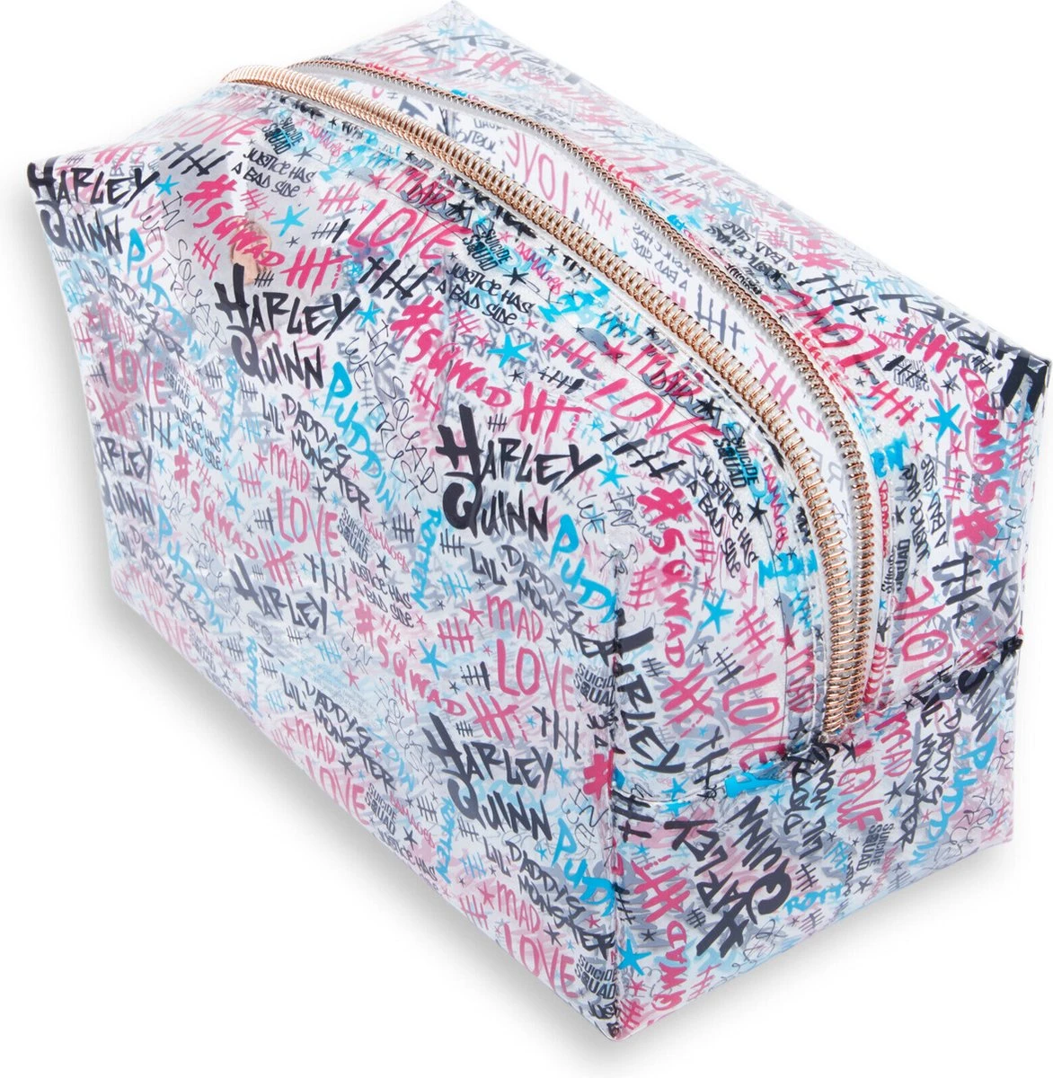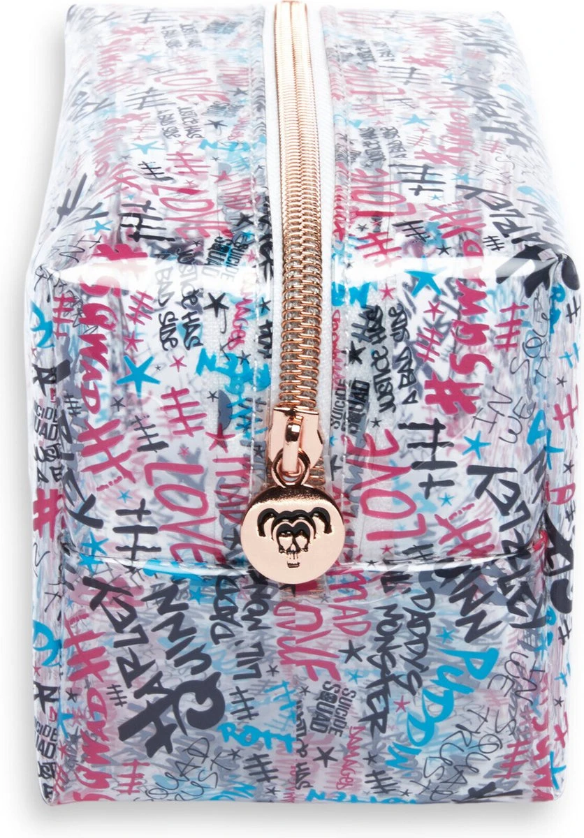 De Makeup Revolution x Harley Quinn™ Puddin’ Makeup Bag is een must voor elke fan van de ‘Maid of Mischief’. Neem je hele makeup squad overal mee naartoe in deze doorzichtige make-up tas met HQ-slogans in graffitistijl en haar beste quotes.