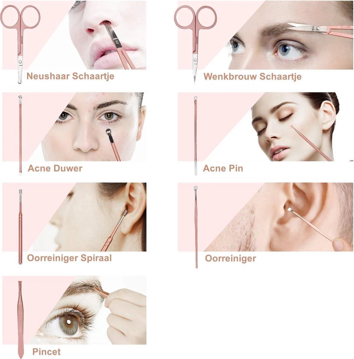 Onze set bestaat uit 11 nagel- én 7 huidverzorgingstools. Meer dan genoeg dus! Zo vind je alles wat je nodig hebt in één set en hoef je nooit meer opzoek naar extra accessoires.