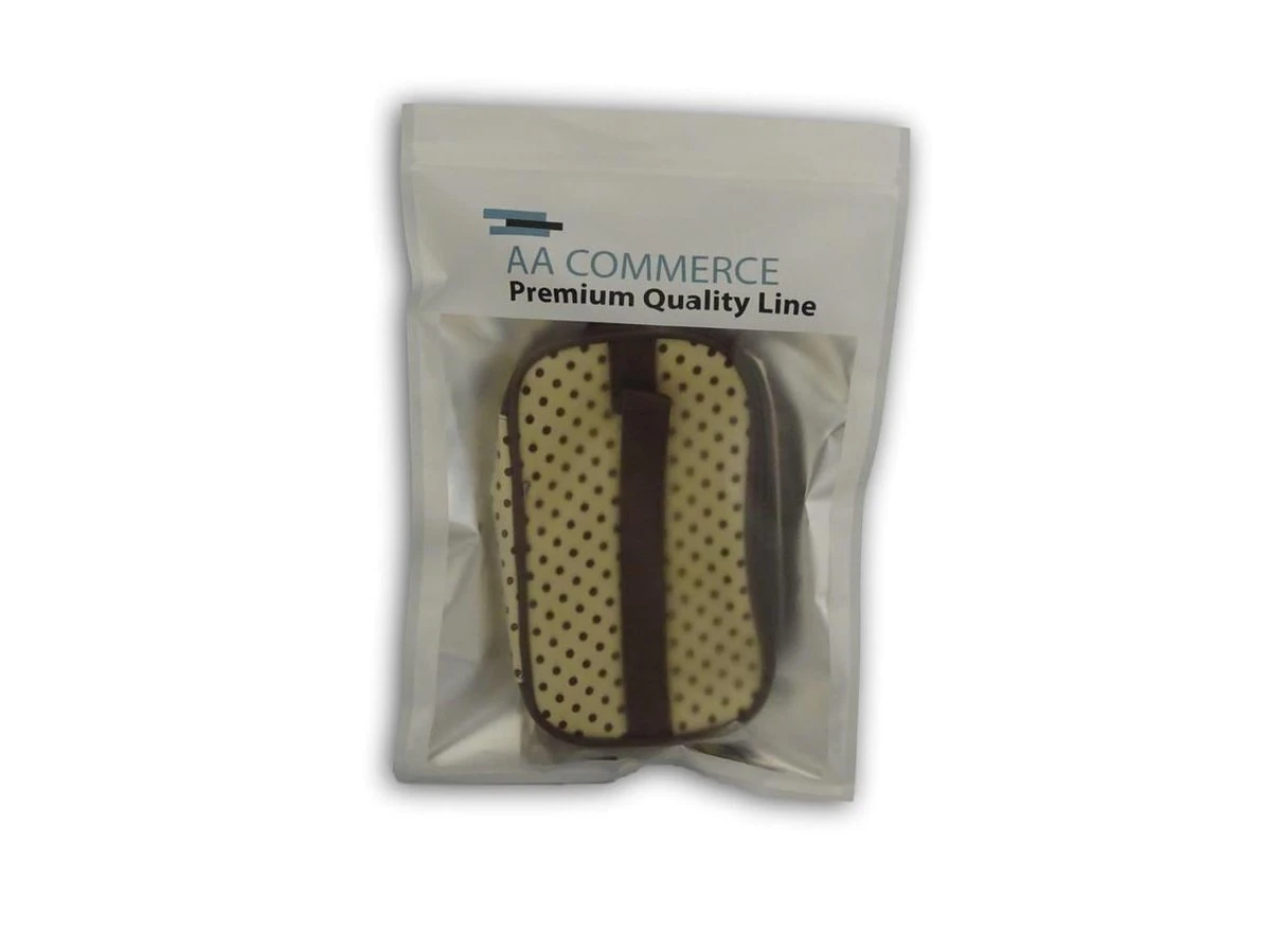 Hoogwaardig make up tasje met make up spiegel in hip Beige Polka Dot design om al je make up accessoires in op te bergen. Het stijlvolle design maakt deze make up tas ideaal om mee onderweg te nemen.