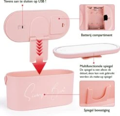 Beautycase Rose – LED-spiegel – Make Up – Make-up Org – Make-up Organizer Met Spiegel – Make-up Koffer – Beautycase – Multifunctioneel – Reisformaat
