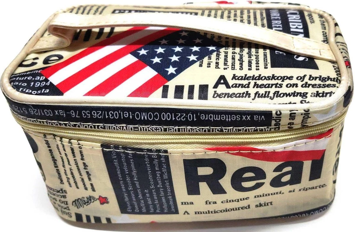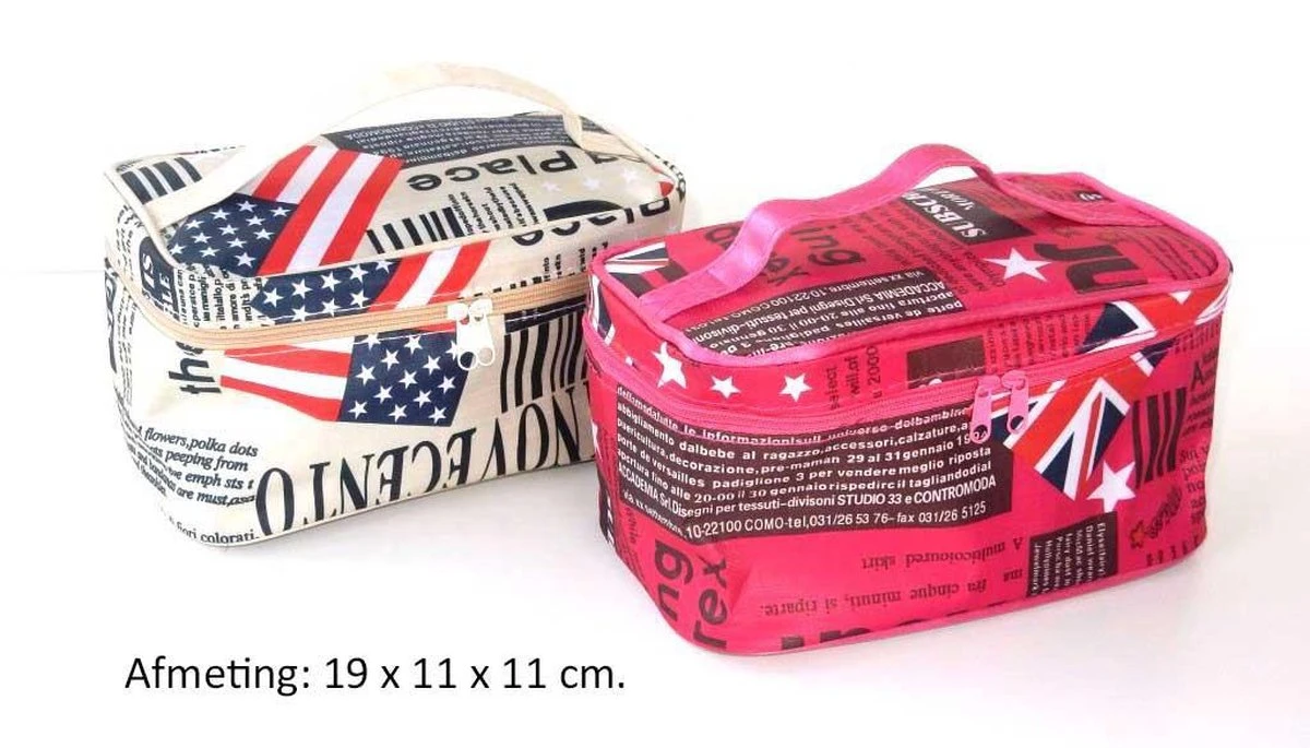 Deze lichtgewicht Mini Beautycase met een afmeting van 19 cm. Lang,11 cm. Breed en 11 cm. Hoog heeft 1 groot hoofdvak en in de deksel 4 steekvakjes en een minispiegeltje.