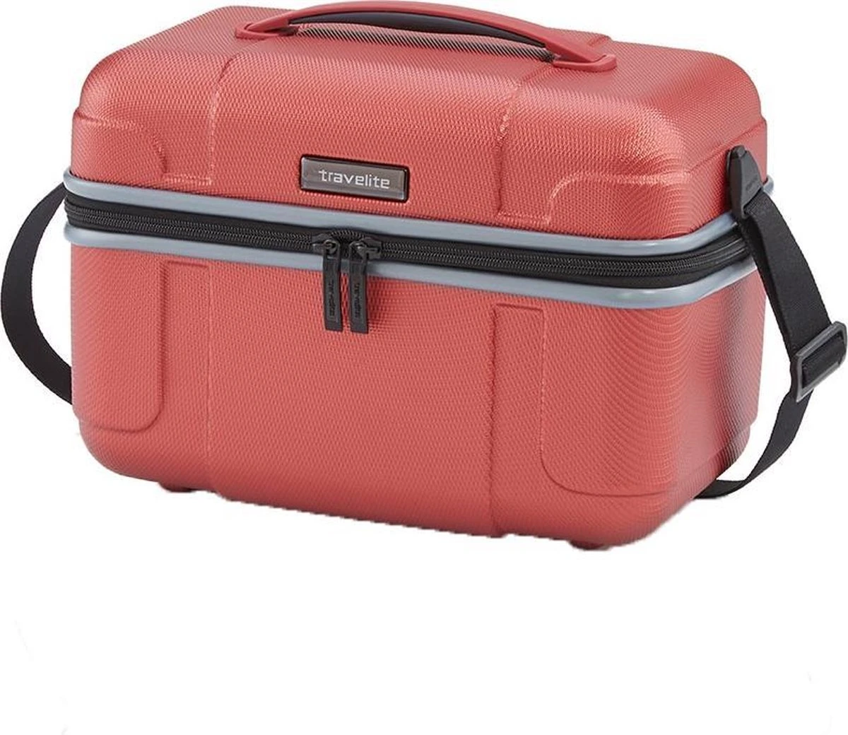 Beautycase uit de Vector serie van Travelite. Travelite presenteert de nieuwe hardschalige Vector serie, de klassieker in een nieuw ontwerp. De schaal van de Vector is gemaakt van krasbestendig ABS materiaal dat wordt gekenmerkt door zijn hoge stabiliteit en stootvastheid. Deze praktische beautycase is voorzien van elastische steekvakken en ruime ritsvakken, een smart-sleeve aan de achterzijde voor een snelle bevestiging aan de trekstang en sluit middels stevige ritsen.